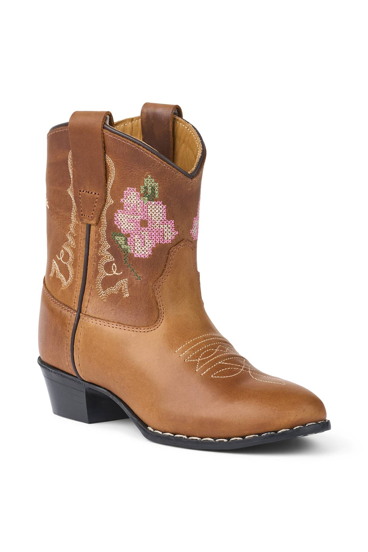 LIMITED COWBOY BOOT LOW - BROWN FLOWER - COGNAC LEATHER