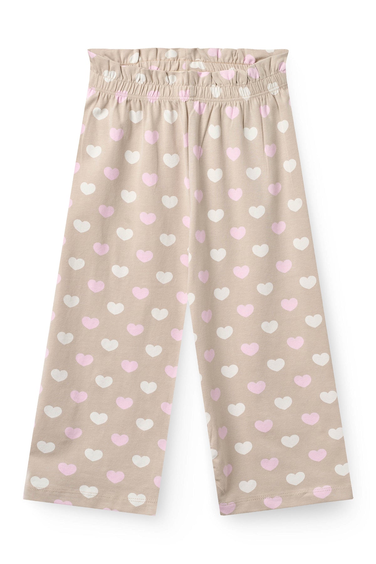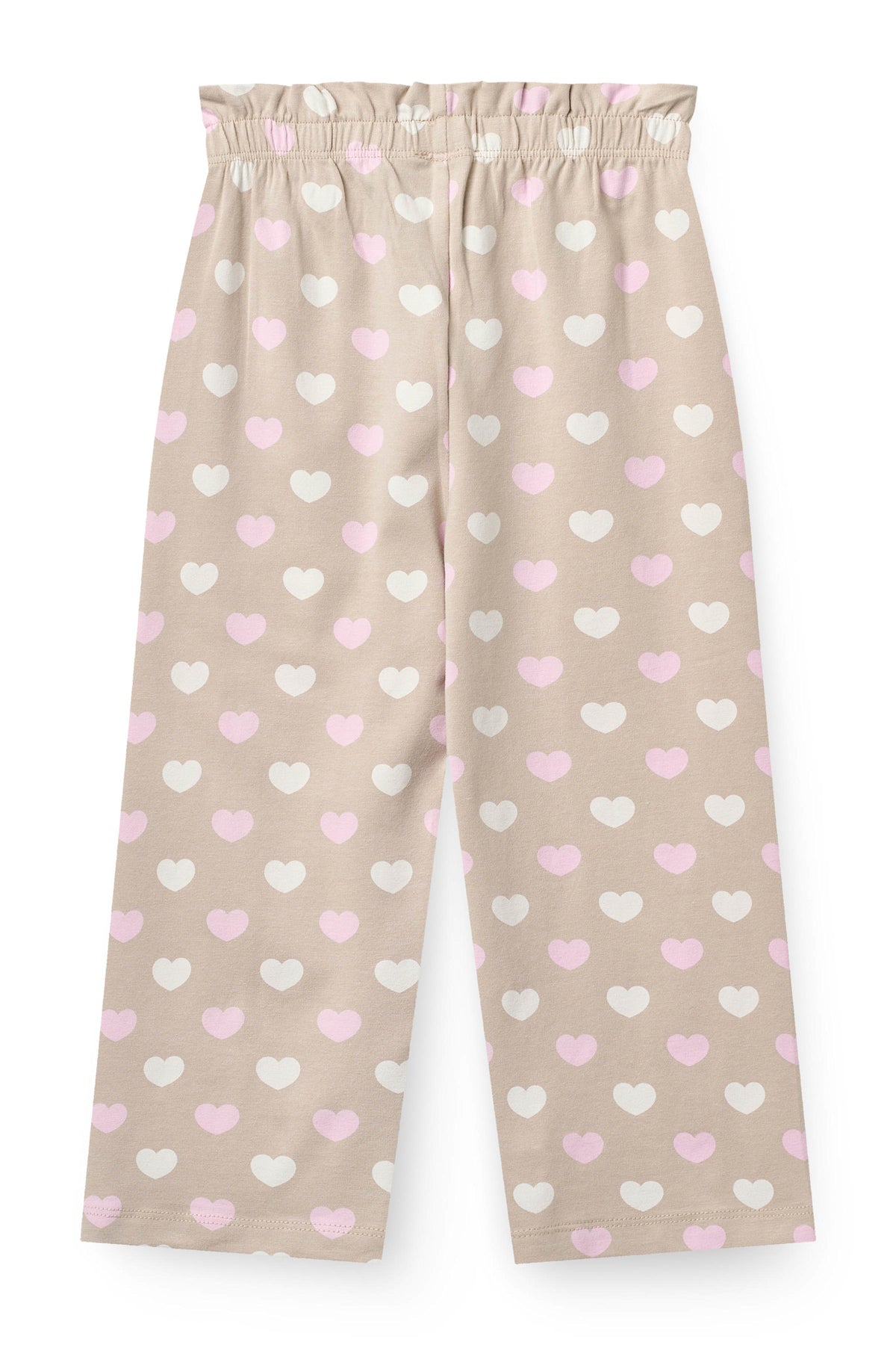 HEART AOP PANTS W. FRILL - BEIGE W. BUBBLEGUM/CREAM