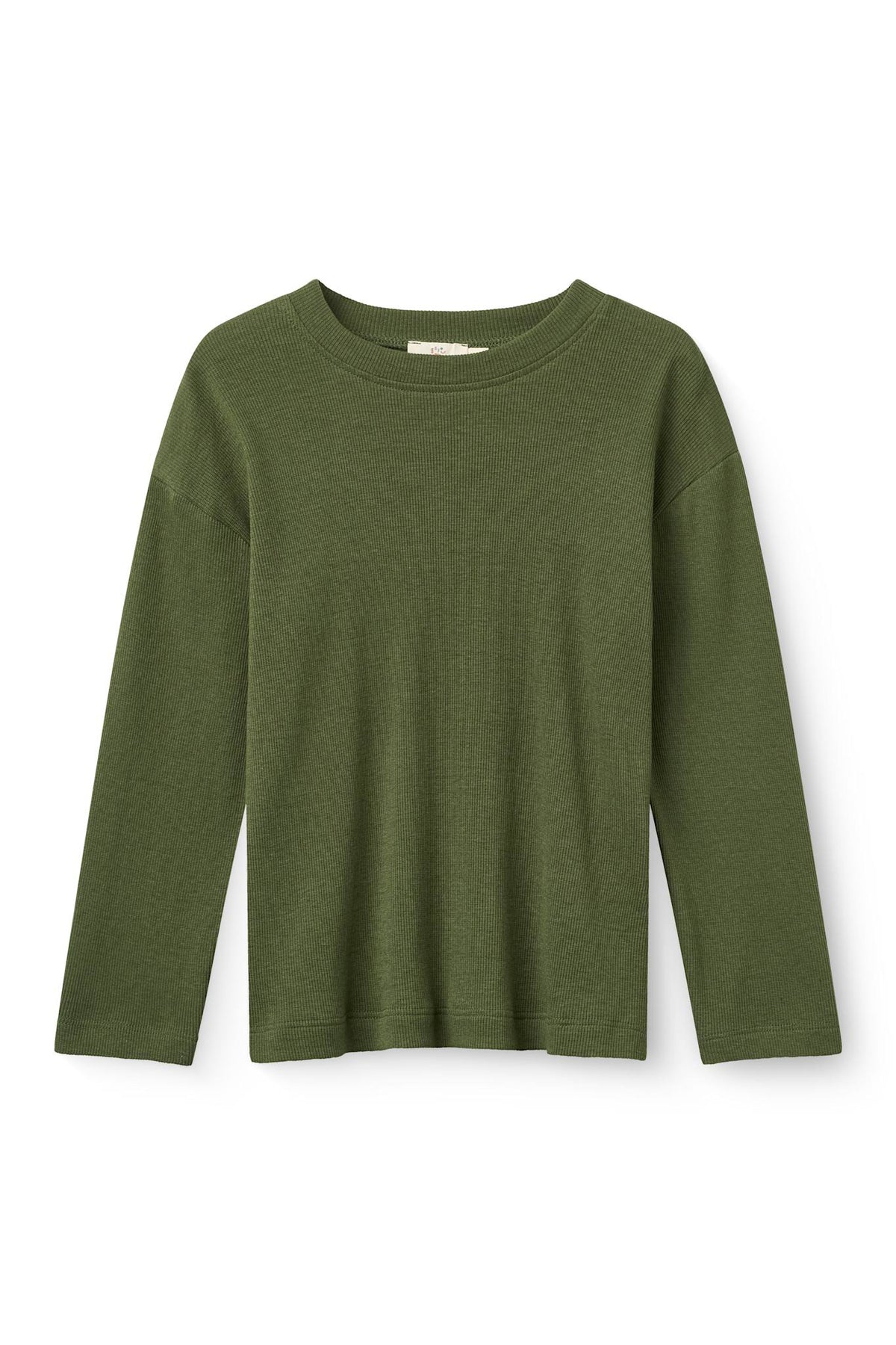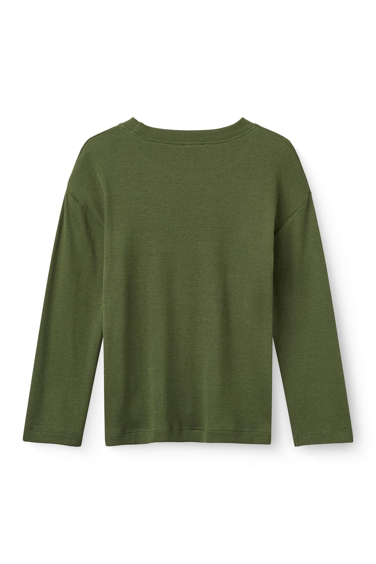 MODAL RIB LS BLOUSE W. DROP SHOULDER - DK GREEN