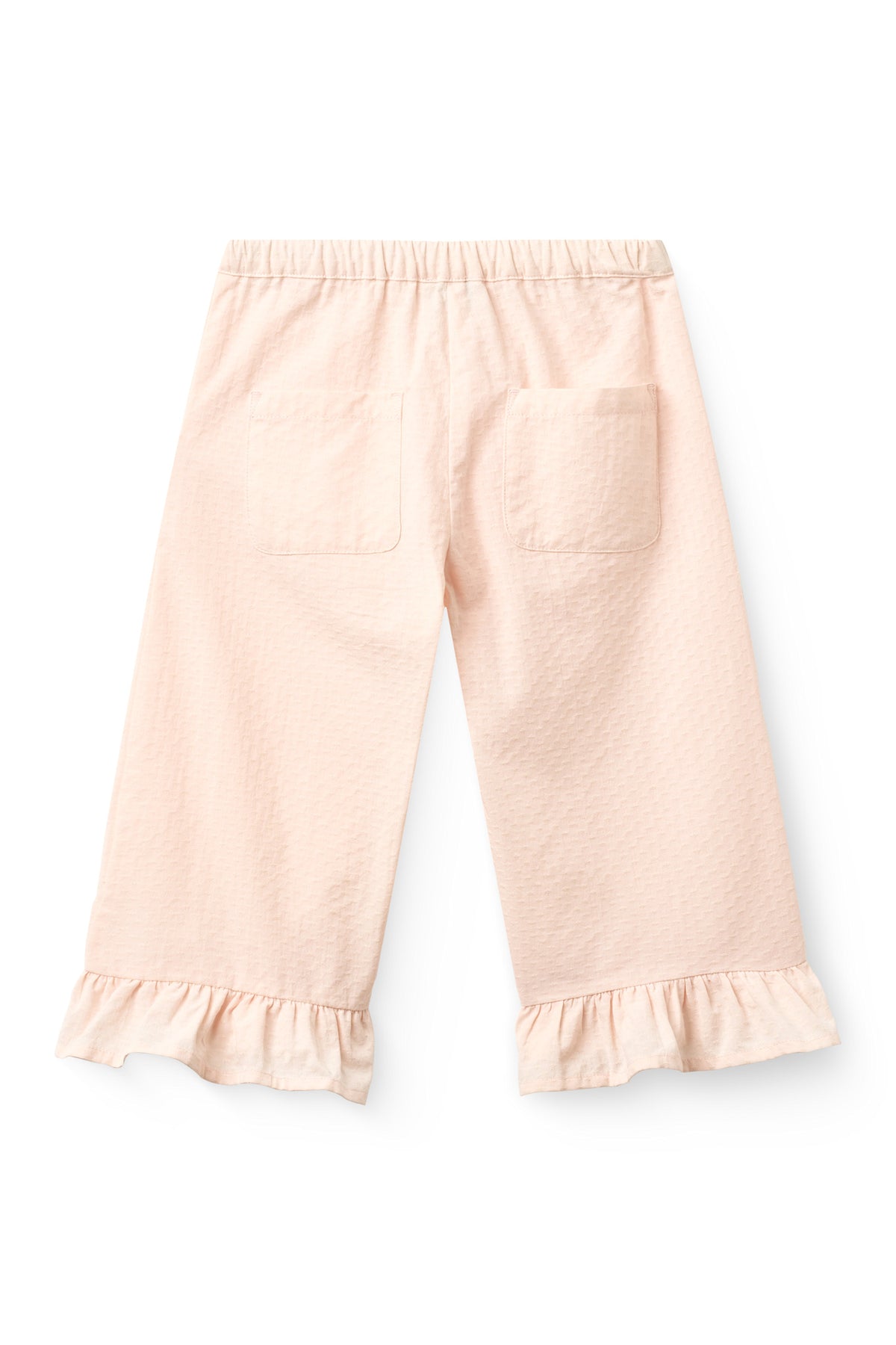 These light pants are crafted in soft, textured and GOTS-certified cotton with a charming flared hem finished with delicate ruffles.