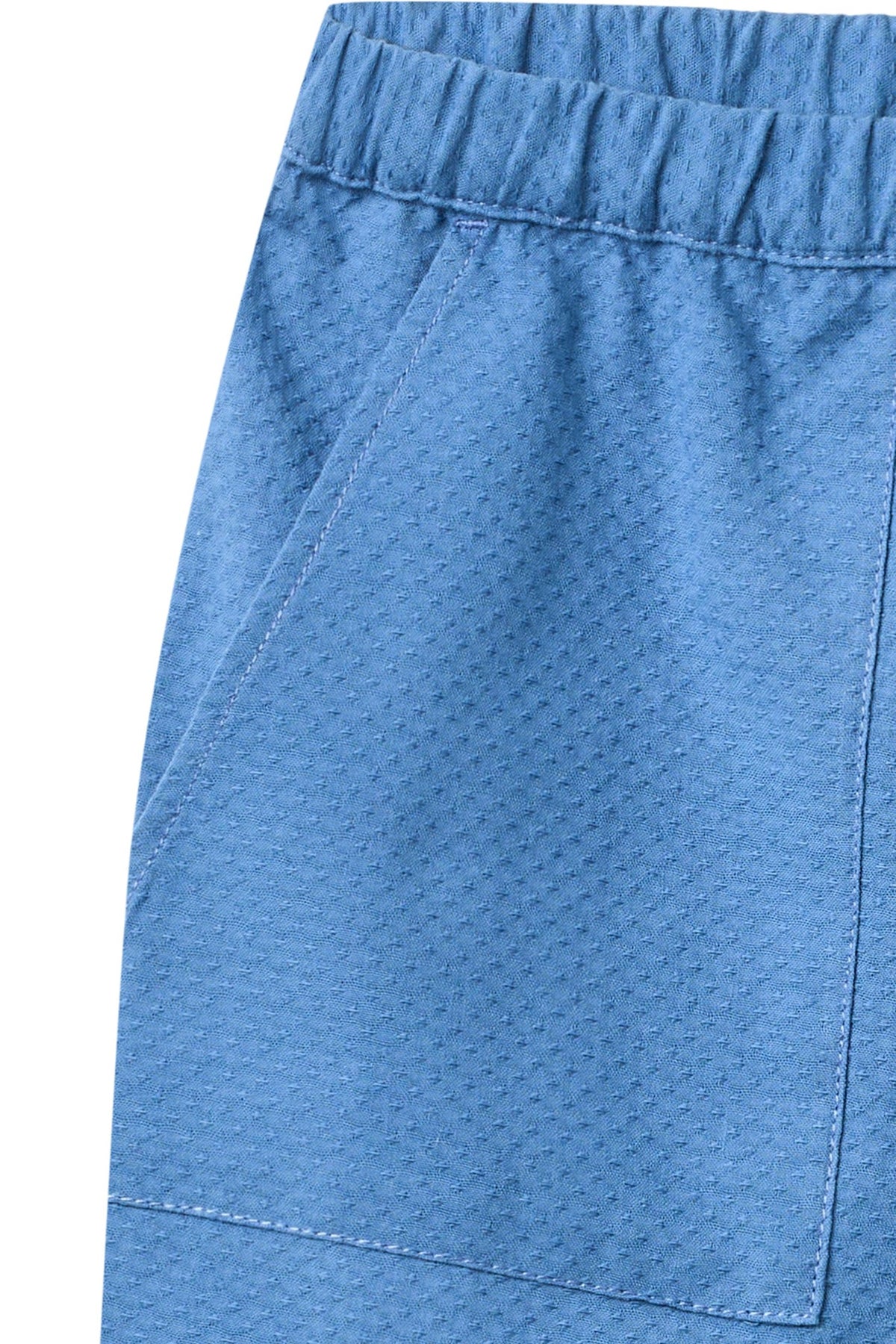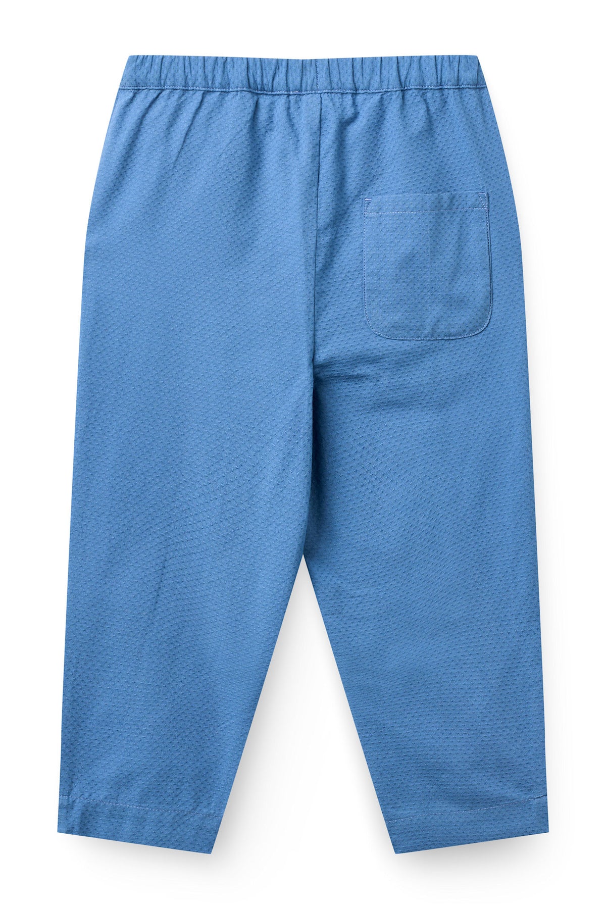 These relaxed-fit pants are designed for everyday comfort, featuring a soft elastic waistband and roomy front pockets. The lightweight textured cotton fabric adds a subtle touch of structure while keeping them easy to wear and move in. Made from 100% GOTS-certified cotton.