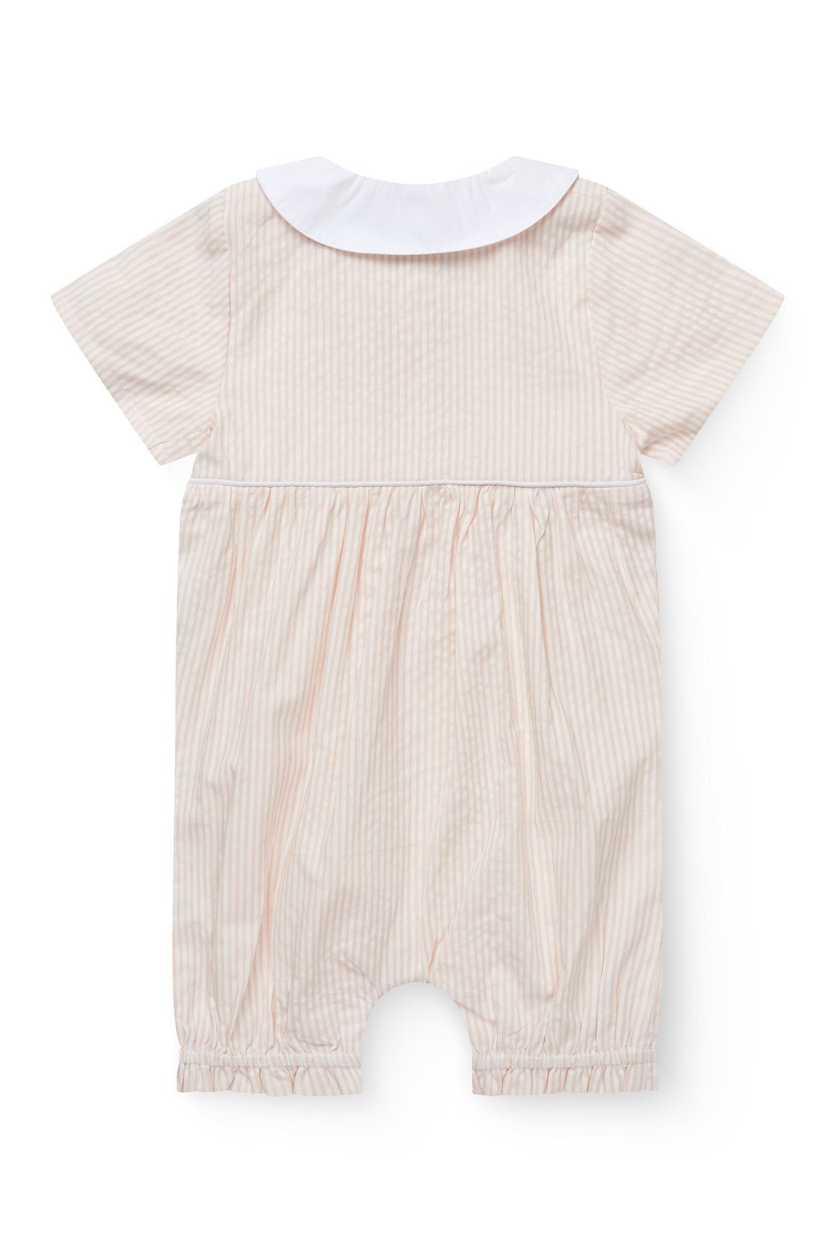 SEERSUCKER ROMPER W. COLLAR - DUSTY ROSE W CREAM STRIPE