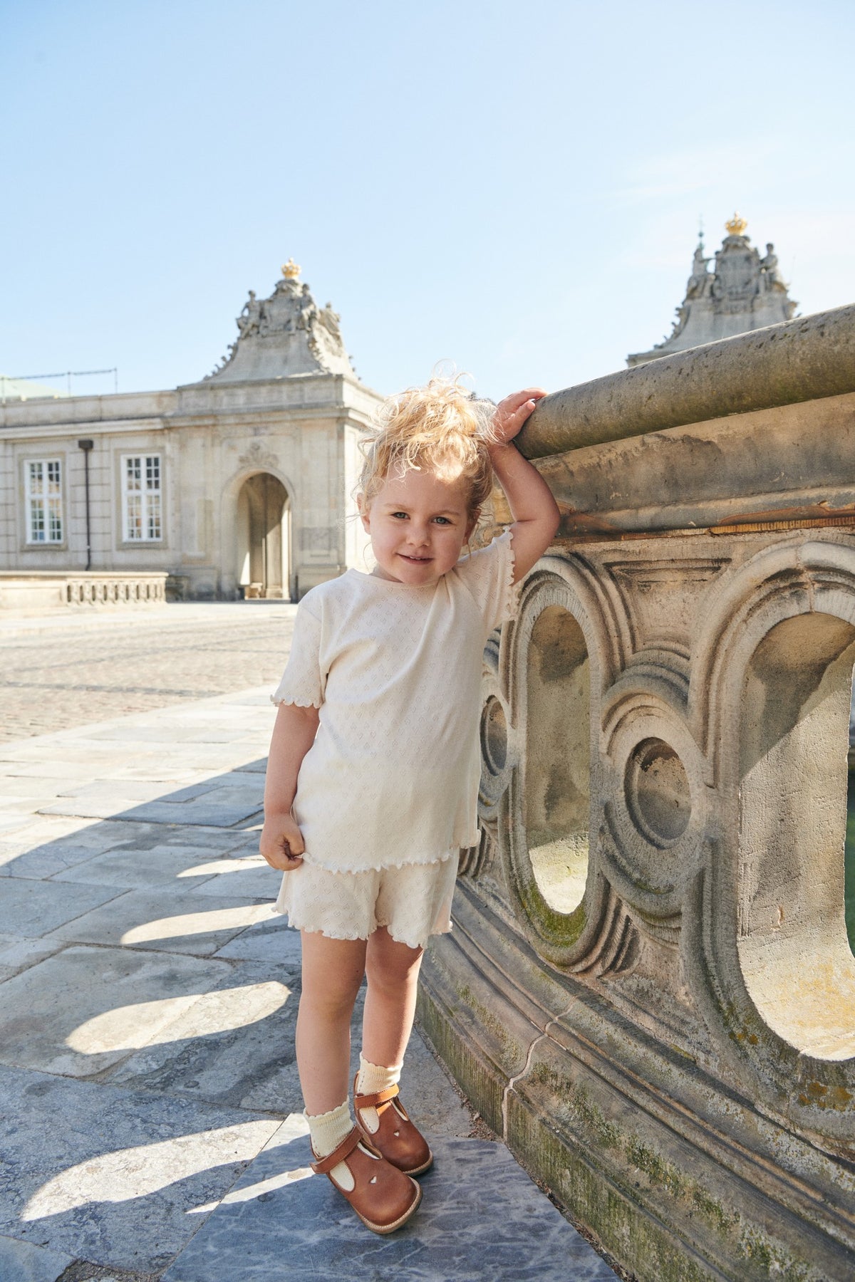 Pointelle tee made in organic cotton. Designed with a short sleeve and a babylock edge at sleeve and bottom hem, for that cute summery look. The light pointelle with the small hearts is made in a super soft jersey quality and comes in 4 different summery shades; cream, light rose, a fresh light yellow and a classic navy. Wash it again and again at 40 degrees and it never loses its shape. No lint and fading colors will be limited. Made in various colors… Of course.