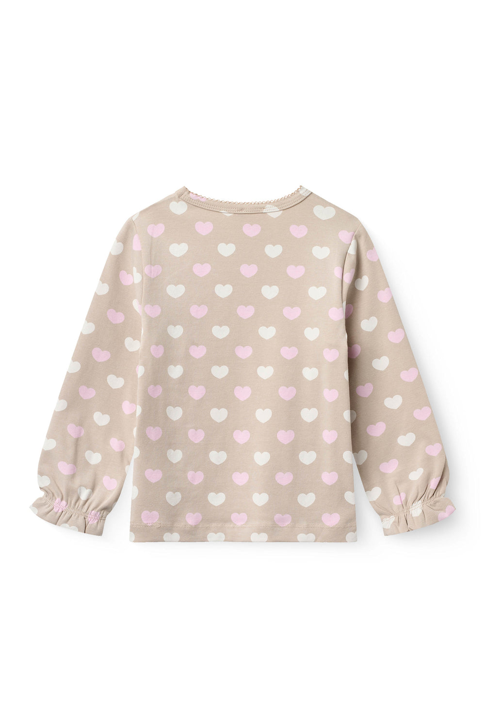 HEART AOP TEE LS W. PICOT - BEIGE W. BUBBLEGUM/CREAM