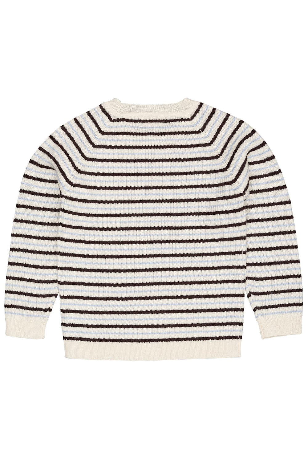 MERINO CLASSIC RIB BLOUSE - CREAM/DK BROWN/DUSTY BLUE COMBI