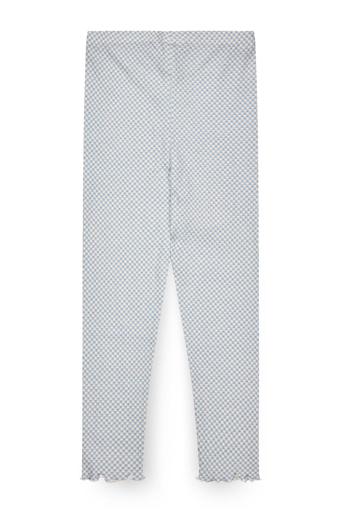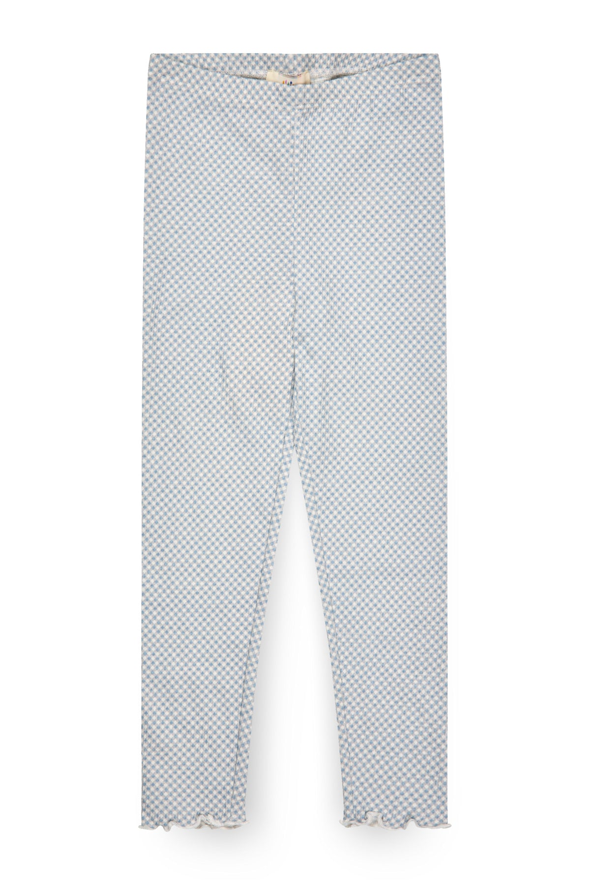 These soft crepe jersey leggings are crafted from a 98% GOTS-certified organic cotton and 2% elastane blend, offering a perfect balance of comfort, breathability, and gentle stretch. Designed for everyday wear, they feature a subtle textured finish, slim fit, and delicate frill detail at the hems.